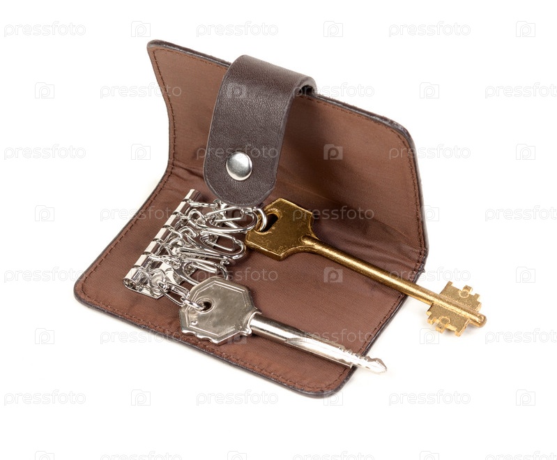 Кожаный футляр для ключей, изолированный на белом фоне