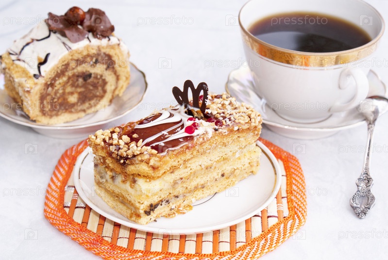 Чашка утреннего черного кофе и сладкие бисквитные пирожные