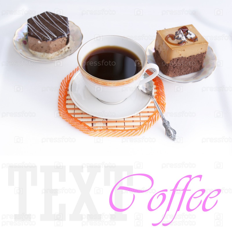 Чашка утреннего черного кофе и сладкие бисквитные пирожные
