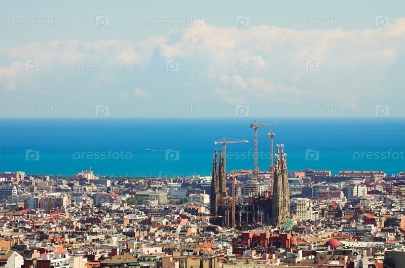 Панорама из Барселоны Город от Парка Гюэлль Гауди