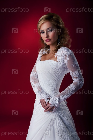 Красивая женщина в свадебном платье в студии