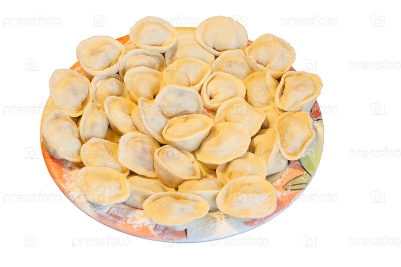 Русские равиоли на столе, изолированные на белом фоне