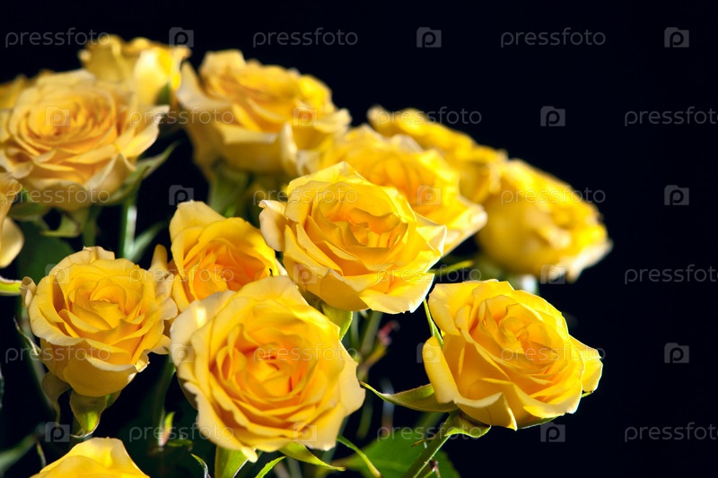 Красивый букет из желтых роз на черном фоне