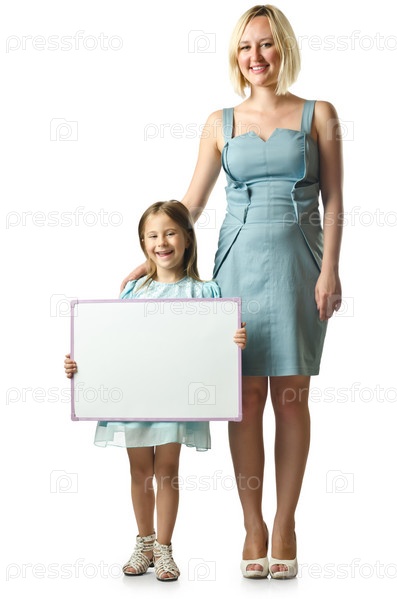 Мать с дочерью, изолированные на белом фоне
