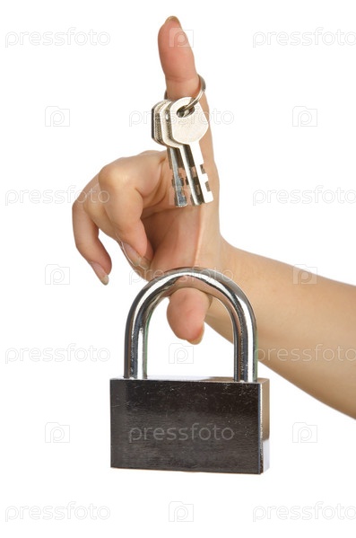 Рука с замком, изолированная на белом