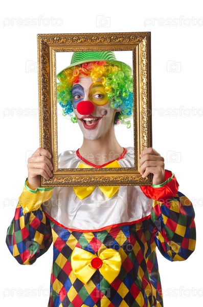 Забавный клоун на белом фоне