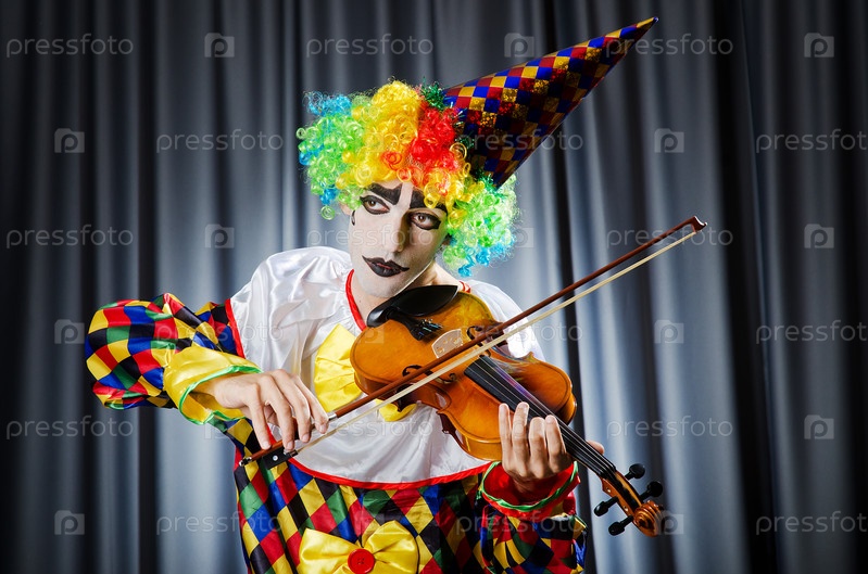 Клоун играет на скрипке