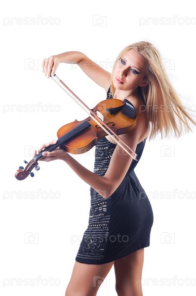 Женщина играет на скрипке на белом фоне