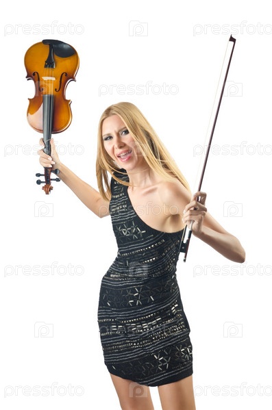 Женщина играет на скрипке на белом фоне