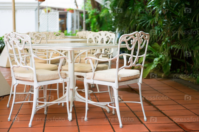 Столы и стулья в классическом стиле в уличном кафе