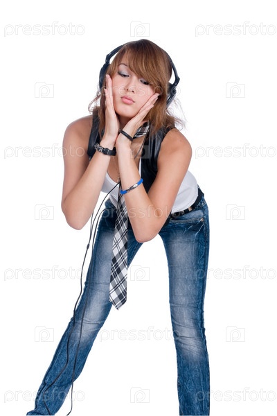 Портрет девушки, которая слушает музыку в наушниках