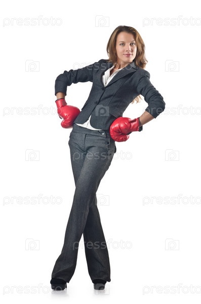 Молодая бизнес-леди в боксерских перчатках