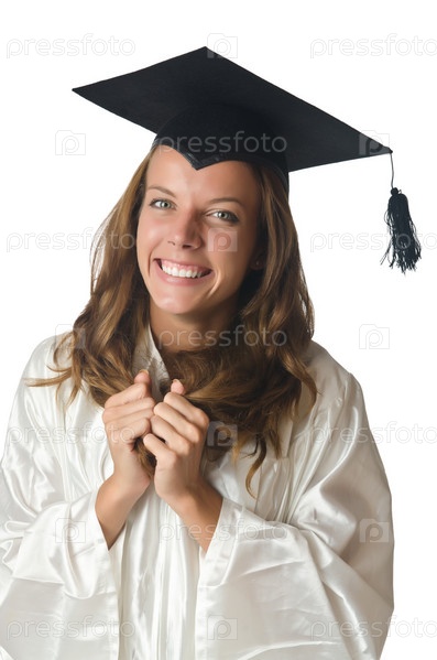 Молодой студент с дипломом на белом фоне