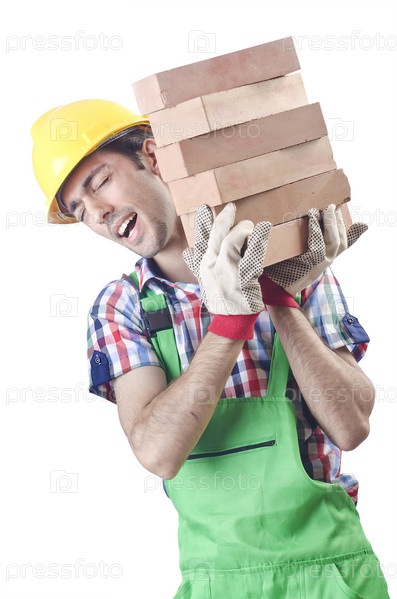 Строительный рабочий, изолированный на белом фоне