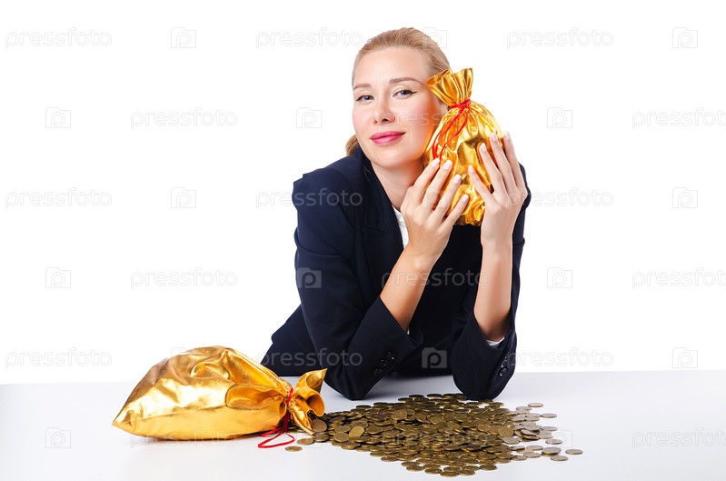 Женщина с монетами и золотыми мешками
