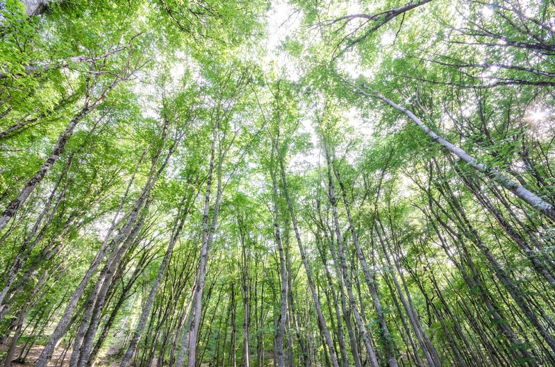 Зеленый лес в яркий летний день