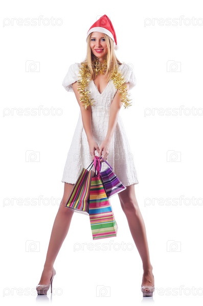 Молодая женщина с рождественскими покупками
