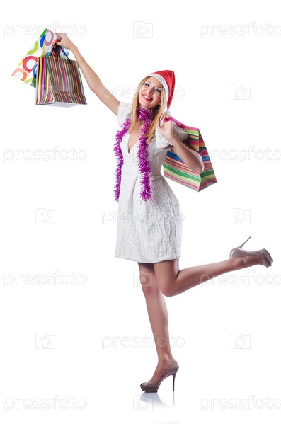 Молодая женщина с рождественскими покупками