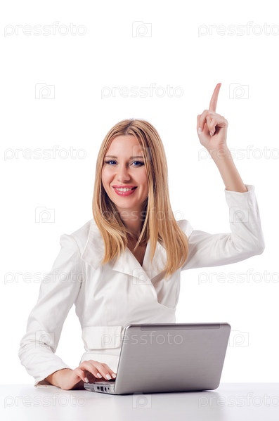 Женщина с ноутбуком на белом фоне