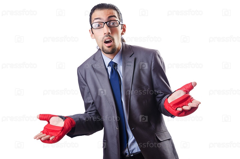 Смешной бизнесмен с боксерских перчатках