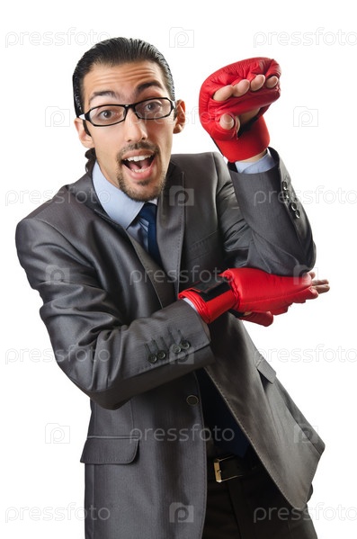 Смешной бизнесмен с боксерских перчатках