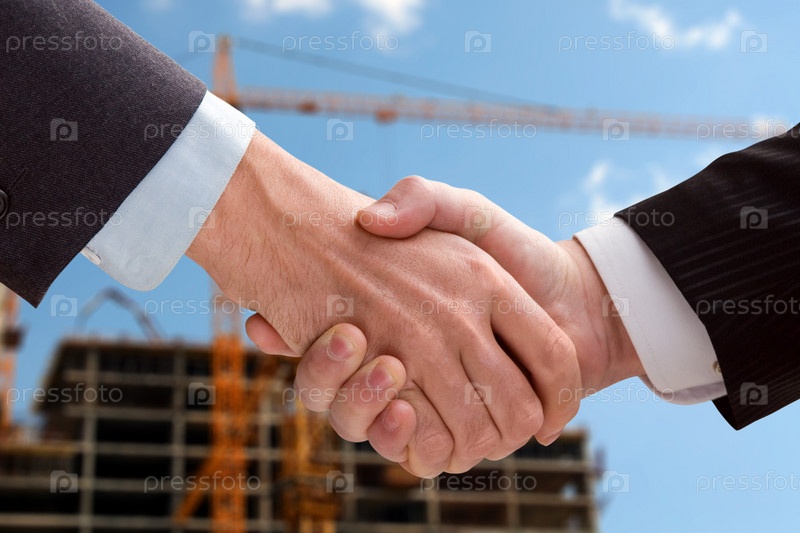 Деловое рукопожатие на фоне стройки