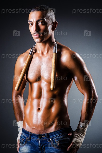 Сильный мужчина с нунчаками