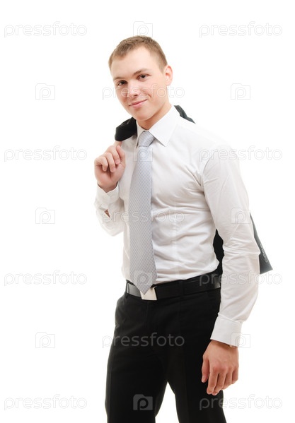 Молодой человек в костюме на белом фоне