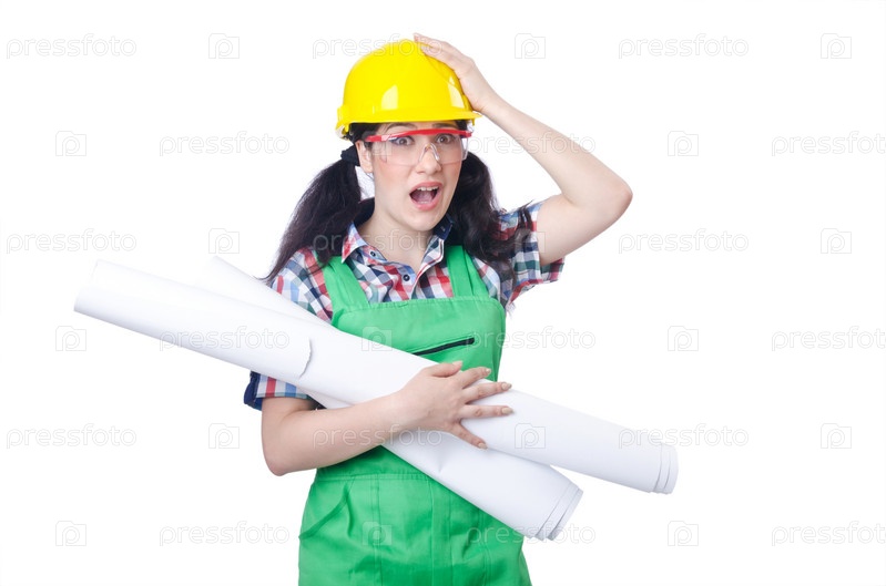 Женщина-архитектор, изолированная на белом фоне