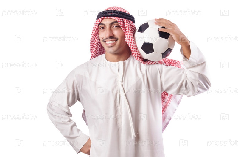Араб с футбольным мячом на белом фоне