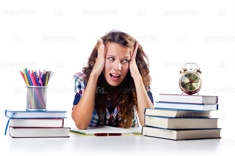 Студентка готовится к экзаменам