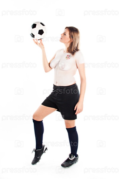 Девушка с бодиартом, стилизованным под форму футбольной сборной Чехии