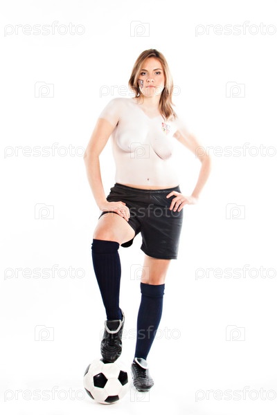 Девушка с бодиартом, стилизованным под форму футбольной сборной Чехии