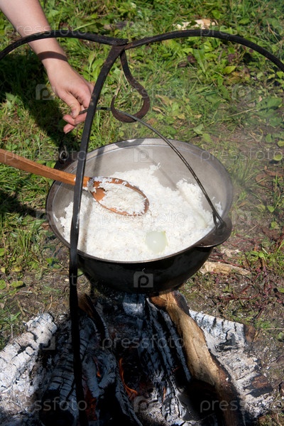 Рис, приготовленный на костре на празднике урожая