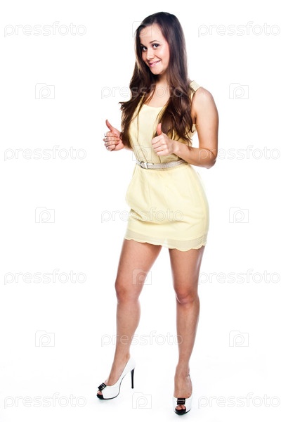Красивая девушка в желтом коктейльном платье