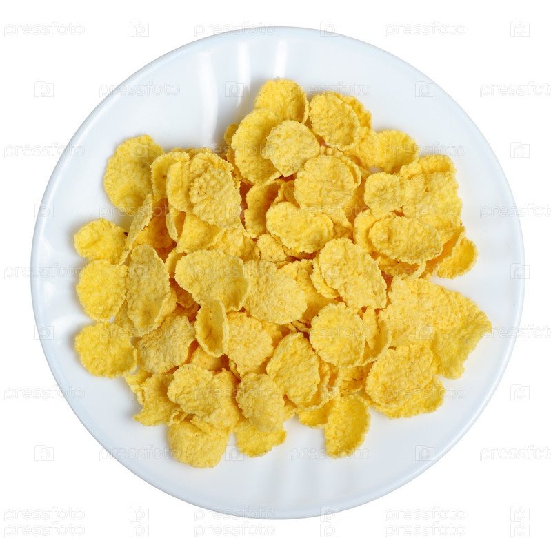 Кукурузные хлопья на белой тарелке