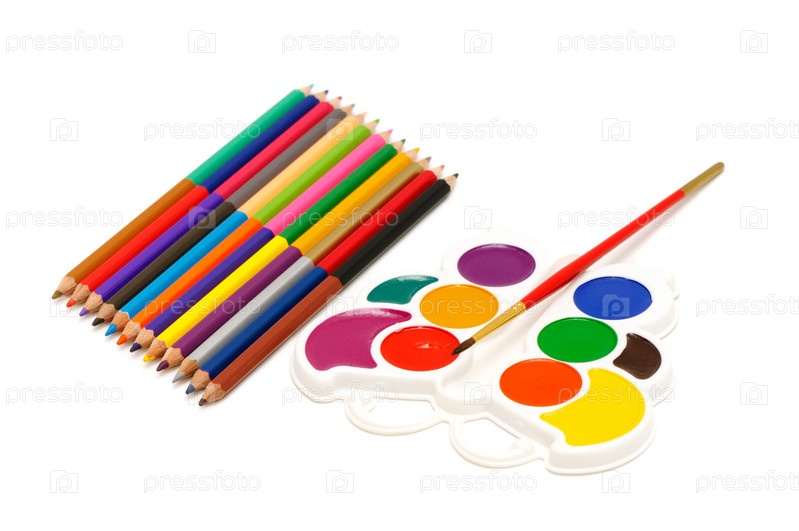 Цветные карандаши и акварель