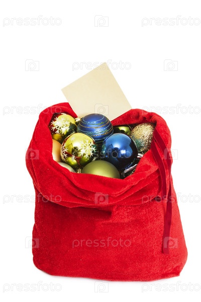 Красный мешок Деда Мороза с елочными игрушками