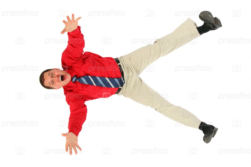 Бизнесмен в красной рубашке падает