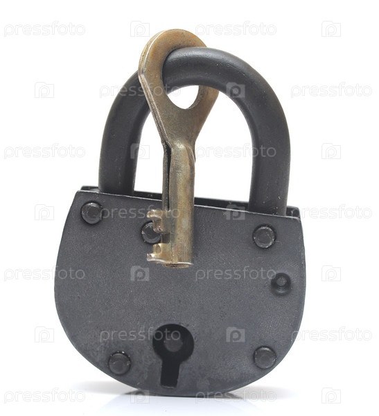 Замок и ключ, изолированные на белом фоне