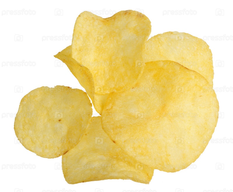 Картофельные чипсы на белом фоне