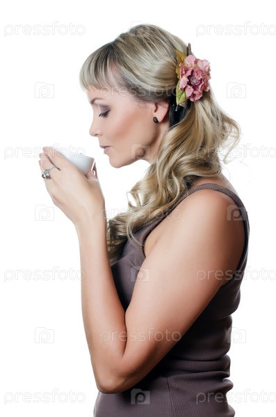 Красивая элегантная женщина с чашкой кофе