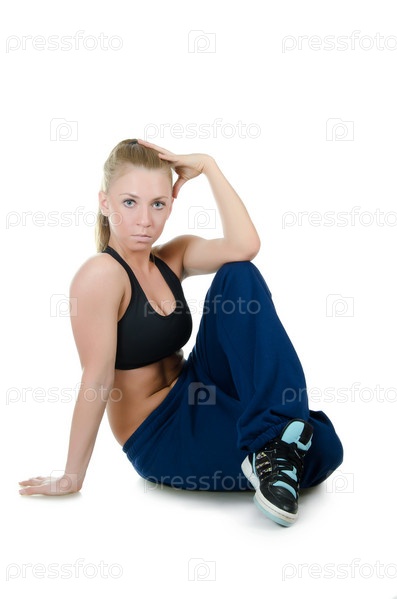 Девушка-тренер по танцам, изолированная на белом фоне