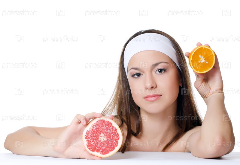Красивая женщина с грейпфрутом