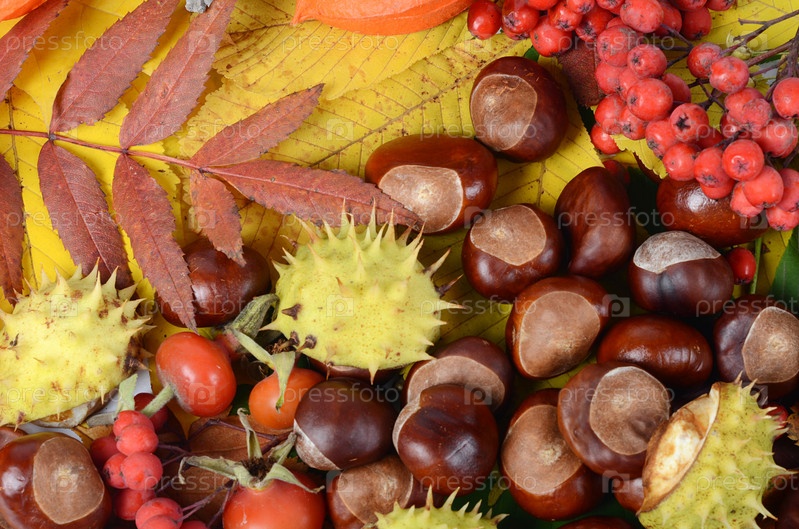 Каштаны и осенние листья