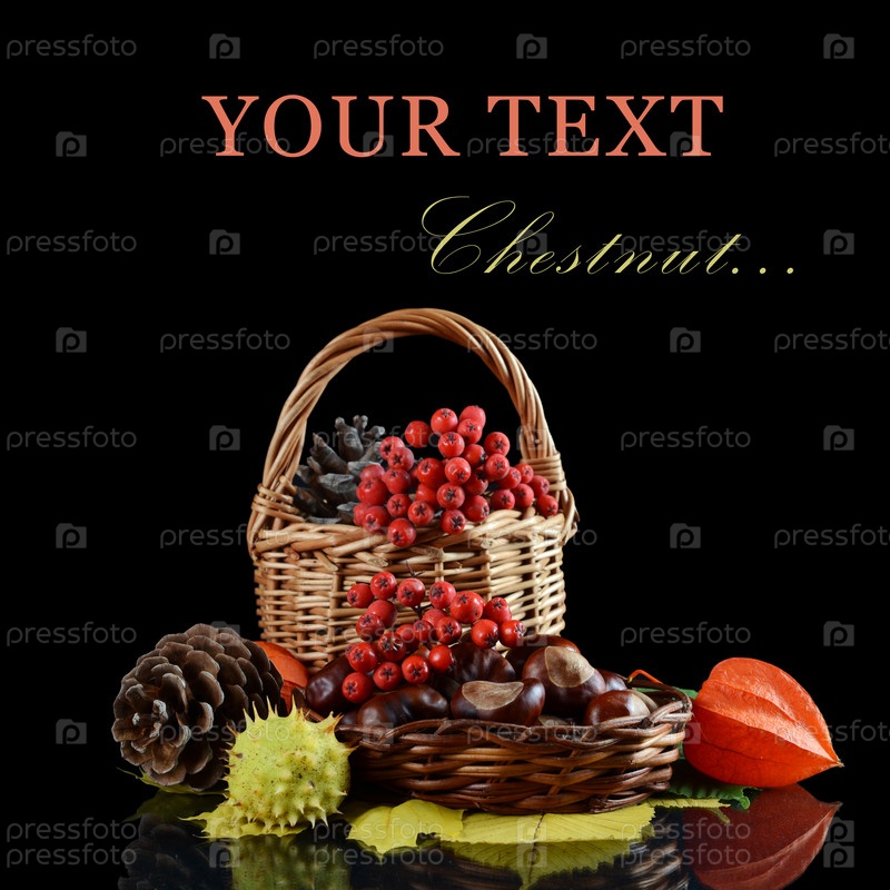 Осенний натюрморт - каштаны и рябина