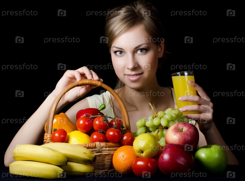 Девушка с фруктами и овощами