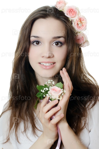 Портрет красивой девушки с цветами в волосах
