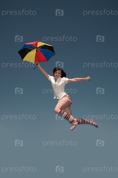 Девушка с зонтиком в воздухе