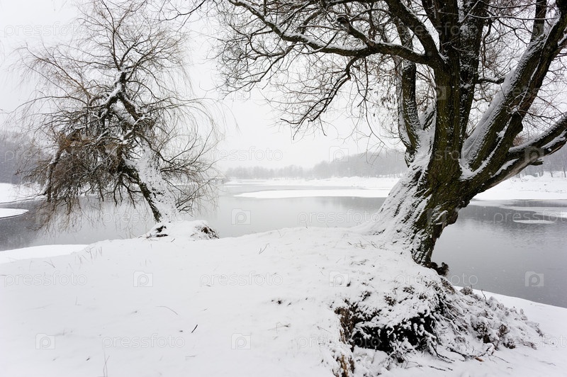 Заснеженный берег в зимний день